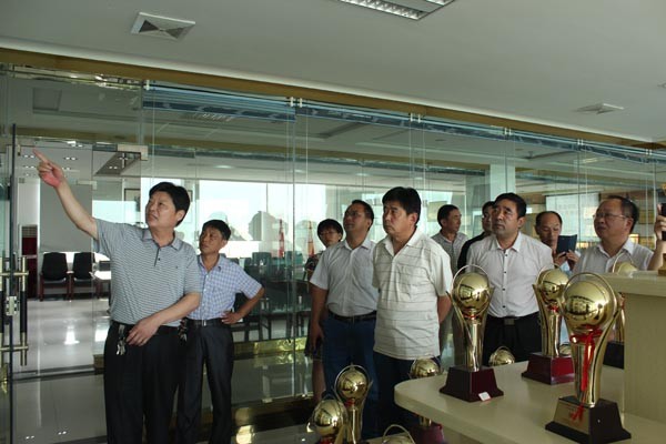 集團(tuán)黨委書記、董事長(zhǎng)、總經(jīng)理李信強(qiáng)(左一)帶領(lǐng)與會(huì)人員參觀集團(tuán)榮譽(yù)室