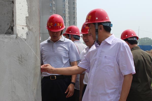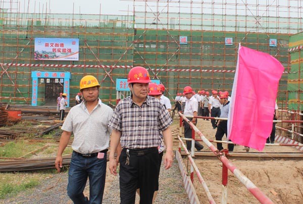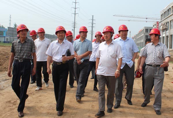 集團(tuán)黨委書(shū)記、董事長(zhǎng)、總經(jīng)理李信強(qiáng)(右)觀摩施工現(xiàn)場(chǎng)